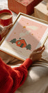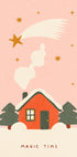 En snötäckt landsbygd vilar i stillhet: en varm, lysande stuga, granar som glittrar och mjuka drivor under en djupblå himmel. En fallande stjärna bjuder in till önskningar och vintermagi. NKTN:s vintageinfluerade illustration blandar humor, värme och nostalgi – perfekt för en festlig, mysig vägg.