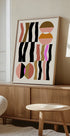 Detta abstrakta geometriska konstverk visar djärva former och jordnära toner i kontrast med rosa och svart på en ren vit bakgrund. Inspirerat av Bauhaus-estetik förenar kompositionen balans, rytm och modern minimalism, och skapar ett statementverk som lyfter varje modernt interiör.