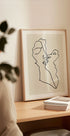 Abstract Faces Intertwined av Uma Gokhale är ett minimalistiskt linjetecknat motiv där två ansikten möts och smälter samman i en elegant, monokrom dans. Mötet mellan blickar och konturer skapar en känsla av intimitet, kärlek och rörelse – perfekt som modern accent i vardagsrum, sovrum eller hall. Passar även i kreativa arbetsrum.