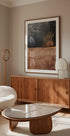 Ett samtida abstrakt konstverk med jordnära toner i brunt, orange och grått, kombinerat med en rustik texturerad yta. Gyllene vertikala penseldrag ger djup och kontrast, vilket skapar ett tidlöst uttryck. Perfekt för minimalistiska, rustika eller moderna interiörer som söker värme och elegans.