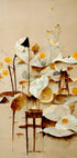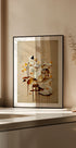 Ett delikat botaniskt konstverk inspirerat av vintage-stil, med lager av blommor i mjuka beige och varma gyllene toner. Med pappersutskärningseffekter och organiska former förenar verket abstraktion med naturlig skönhet, perfekt för moderna interiörer som söker en tidlös och fridfull estetik.