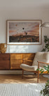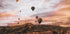 Ett storslaget landskap från Kappadokien i skymningen med luftballonger som svävar över himlen. De varma ökenfärgerna och de dramatiska molnen skapar en känsla av frihet och äventyr, perfekt för reseinspirerad väggkonst.