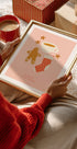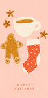 En lekfull julillustration som fångar vinterns mys: en rykande kopp kakao, en glad pepparkaksgubbe och detaljer som snöflingor och julstrumpa skapar en varm, nostalgisk stämning. Perfekt för att addera humor och retrocharm i barnrum, kök eller vardagsrum under hela säsongen. En handritad, mjuk palett ger extra julmagi hemma.