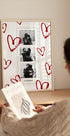 En romantisk personlig poster i modern Polaroid-stil som fångar era bästa ögonblick i tidlös svartvitt. Omgiven av handritade röda hjärtan symboliserar den kärlek, närhet och minnen som varar för evigt. Lägg till dina egna bilder och datum för att skapa ett unikt minne eller en perfekt present till jubileum, bröllop eller alla hjärtans dag.