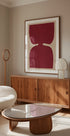 Crimson Reflection av Vitor Costa är en abstrakt komposition där geometriska plan och organiska kurvor i djupt karminrött möter en varm beige fond. Subtila akvarellskiftningar och tydliga kontraster skapar rytm och balans, med en modern, midcentury-doft som lyfter både vardagsrum och kontor. Perfekt som blickfång i samtida interiörer.
