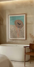 Denna fridfulla sommarillustration fångar ett stillsamt ögonblick vid poolkanten. En kvinnas armar vilar elegant på kaklet vid en glittrande turkos pool, medan hennes bredbrättade hatt kastar en mjuk skugga över den soliga scenen. En öppen bok bredvid antyder en lat eftermiddag fylld med läsning, dagdrömmar och sommarvärme. Ett perfekt konstverk som väcker känslor av lugn, njutning och medveten närvaro — och för in semesterkänsla i ditt hem.