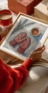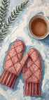 En stilla vinterscen: stickade handskar vilar i pudersnö bredvid en rykande kopp kakao, en liten grankvist antyder advent och kommande jul. Den mjuka färgskalan och det nordiska ljuset skapar hygge och varm nostalgi. Ett rofyllt motiv av Ohkimiko som fångar vinterlugnet. Doften av choklad och snökornens glitter bjuder in till vintermys.