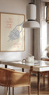 En charmig och stilren poster med en blå linjeteckning av en gaffel och spaghetti samt texten: ”Livet är en kombination av magi och pasta.” Perfekt till köket.