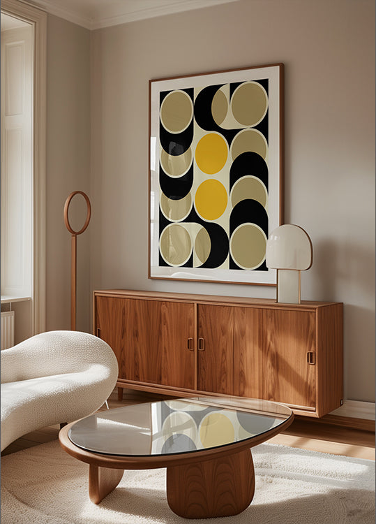 Retro Circles Dance by Petr Strnad - Premium quality paper with a smooth matte surface and elegant feel. The matte finish reduces glare and gives a refined, timeless look. Strong and durable for long-lasting use, ideal for both professional settings and decorative displays.
